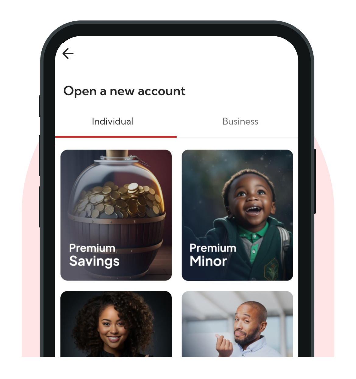 An account is opened for you during onboarding. You can also open more accounts via the app.